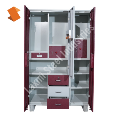 A three-door premium steel wardrobe designed for organised and spacious storage. Crafted using heavy-gauge material and offered in premium colour options, it combines durability, functionality, and refined aesthetics for modern living spaces.